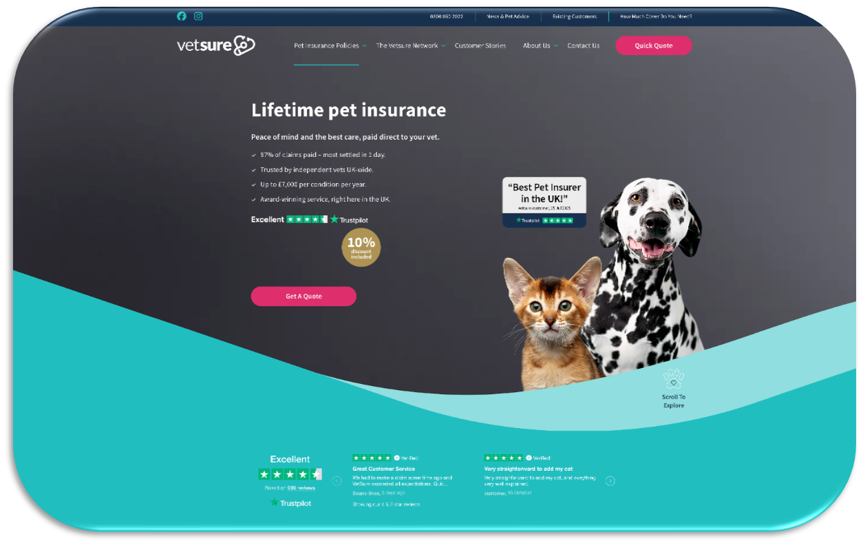 Kitty had the opportunity to assist Vetsure in enhancing their site’s load speed and resolving bugs that were causing frequent site outages.